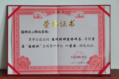 “隨峰牌神農(nóng)綠碎茶”榮獲首屆“國飲杯”全國茶葉評比“一等獎”