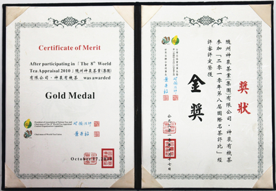 2010年10月,我公司選送的“神農(nóng)有機(jī)茶”榮獲第八屆國際名茶評(píng)比“金獎(jiǎng)”